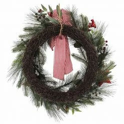 St. Nicholas Square® Embroidered Stars Artificial Pine Holly Wreath