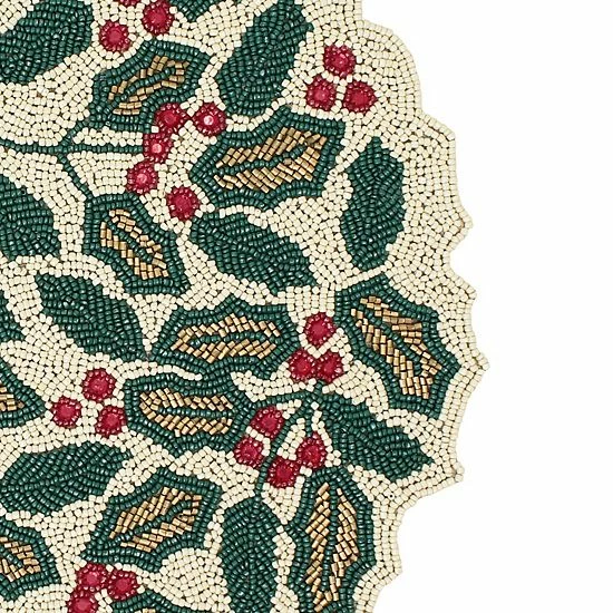 Deck the halls, or the kitchen, with these festive St. Nicholas Square Beaded Holly placemat.
