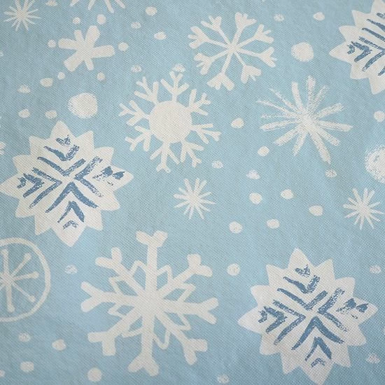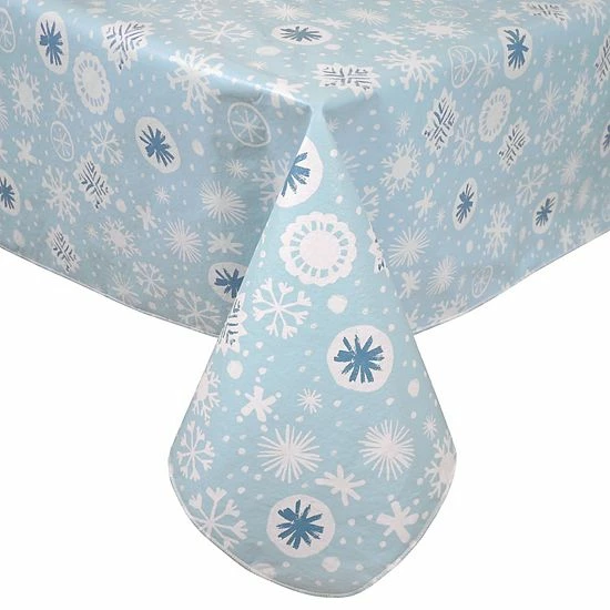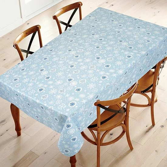 Get your home holiday ready with this St. Nicholas Square blue snowflake vinyl tablecloth.