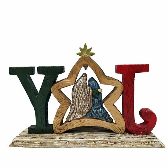 Spread cheer and happiness with this St. Nicholas Square Carved Joy Nativity Christmas Table Decor.