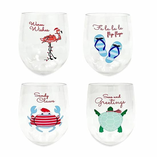 Get your home holiday ready with this St. Nicholas Square Coastal stemless wine set.