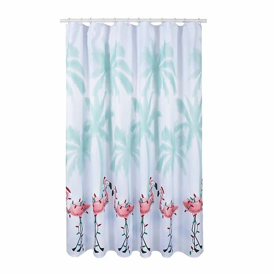 Bring a festive look to your bathroom with this St. Nicholas Square® Coastal Palm Flamingo Shower Curtain.