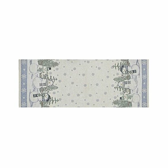 Give your dining space a holiday makeover with this St. Nicholas Square cozy snowman tapestry table runner.