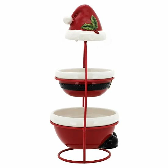 - Removable Santa bowls for fun tiered serving of holiday snacks and more