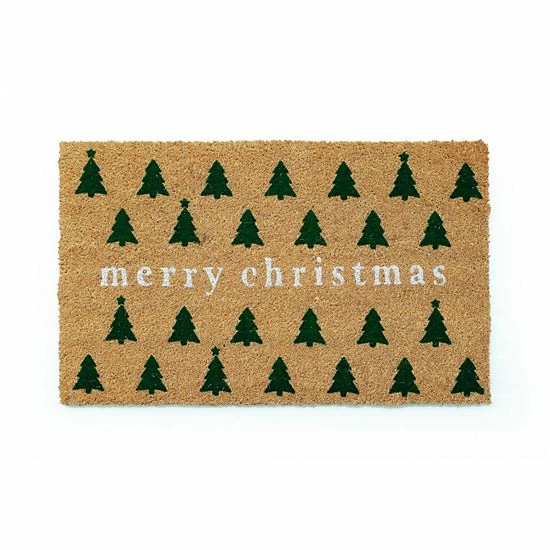 Celebrate the season in style with this St. Nicholas Square® Merry Christmas Trees 18” x 30” Coir Doormat.