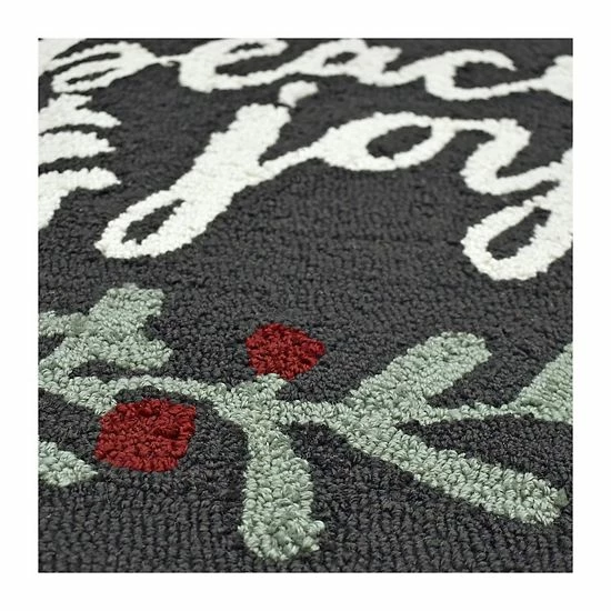Lend seasonal style to any living area with this St. Nicholas Square® Peace & Joy Hooked 20” x 30” Rug.