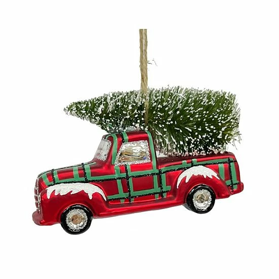 Spread cheer and happiness with this St. Nicholas Square Plaid Truck Christmas Ornament on your Christmas tree.