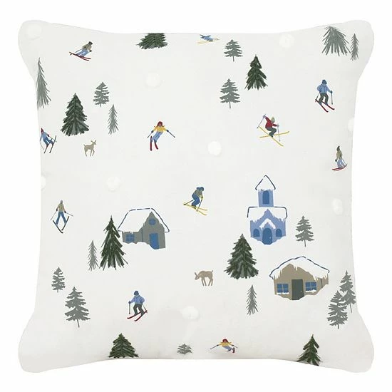 Celebrate the magic of the season with this St. Nicholas Square® Skier Village Throw Pillow.