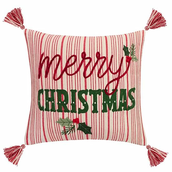 Create a festive feeling with this seasonally stylish St. Nicholas Square® Striped Merry Christmas Throw Pillow.