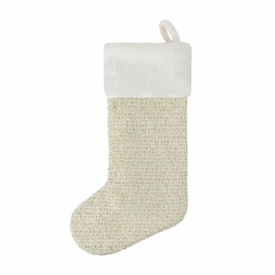 Add a festive look to your space with this lovely St. Nicholas Square® White & Gold Stocking.